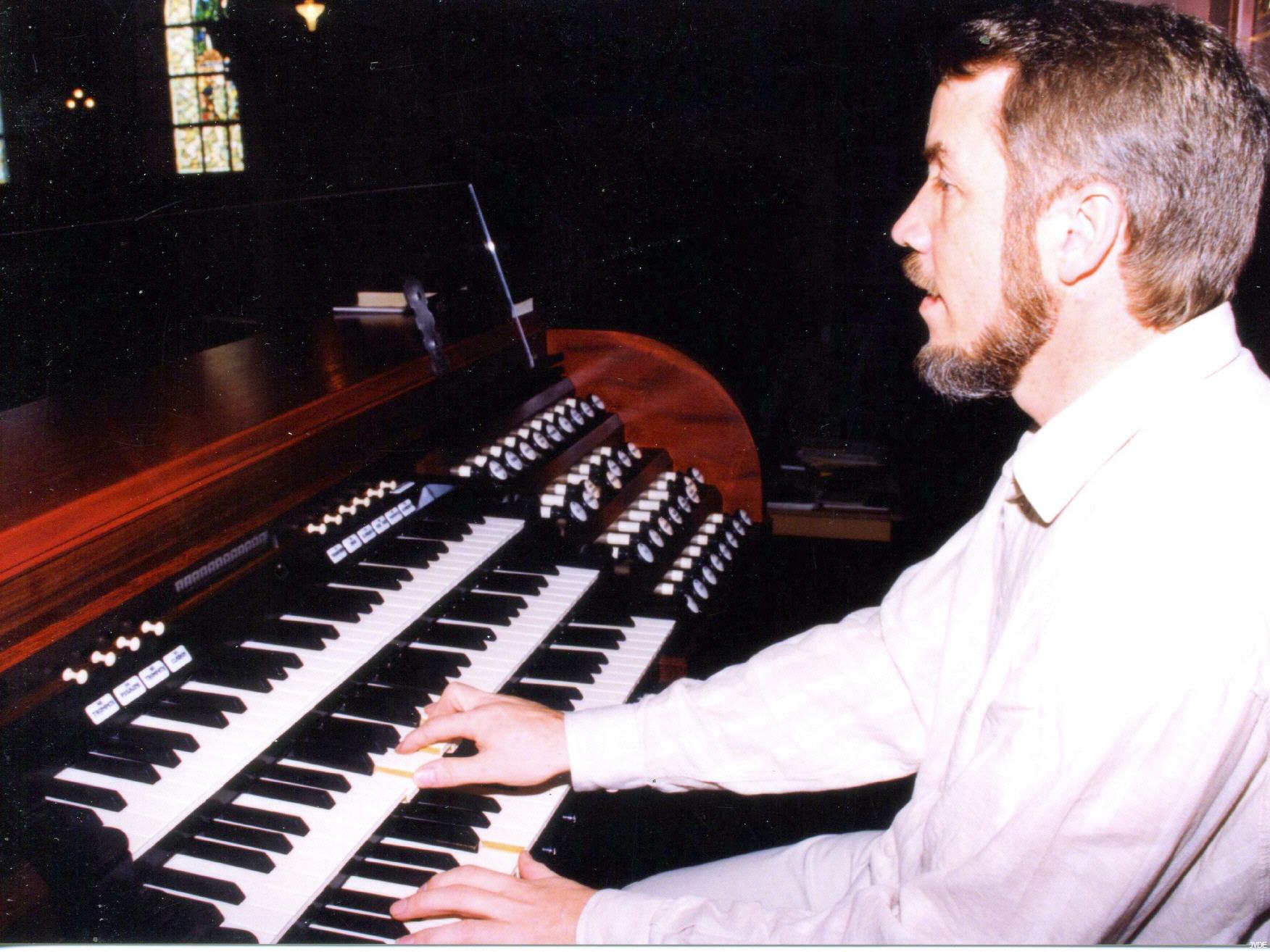 An der heimischen Orgel (alter Umbau, elektronische Innereien)